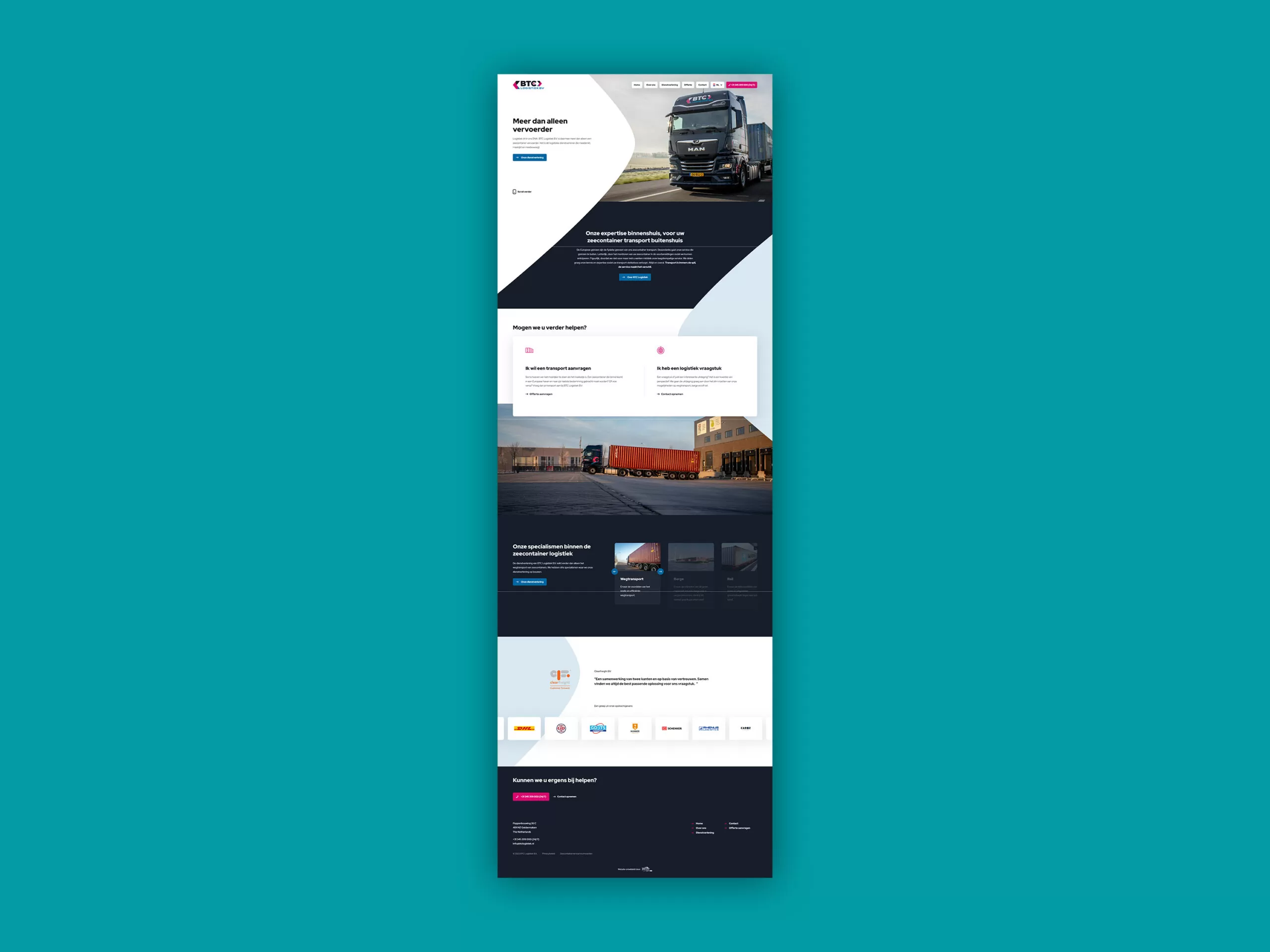 Voor BTC Logistiek B.V. uit Geldermalsen mochten we de nieuwe website ontwikkelen. BTC Logistiek B.V. is zeecontainer vervoerder, maar doet net een stapje meer. Zo zijn ze ook gespecialiseerd in Barge (transport per boot) en Rail (transport per trein). De slogan van BTC Logistiek B.V. slaat de spijker op z’n kop: transport is de spil, de service maakt het verschil.